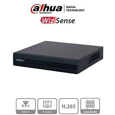 El Dahua DH‑XVR1B04‑I/T permite grabar hasta 4 señales HDCVI y añadir 1 IP, con posibilidad de ampliar a 5 IP. Soporta compresión H.265, detección de movimiento inteligente y audio bidireccional en cada canal grabador. Integra interfaz HDMI/VGA, red Gigabit, e interfaz para HDD (hasta 6 TB). Su decodificación es de 1080p Lite, ideal para monitoreo en calidad HD. Compatible con WizSense para IA básica de movimiento, es una solución accesible y expandible para pequeñas instalaciones que requieren integración de cámaras IP.